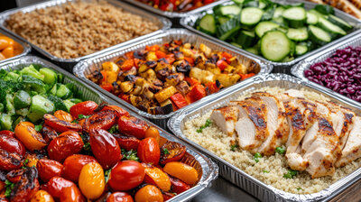 Choose from our curated themed menus below, each designed to serve 10–100 guests, or work with our chef to customize your own menu. All packages include disposable serving trays, utensils, and labeled menus. Customizations and dietary accommodations available upon request.